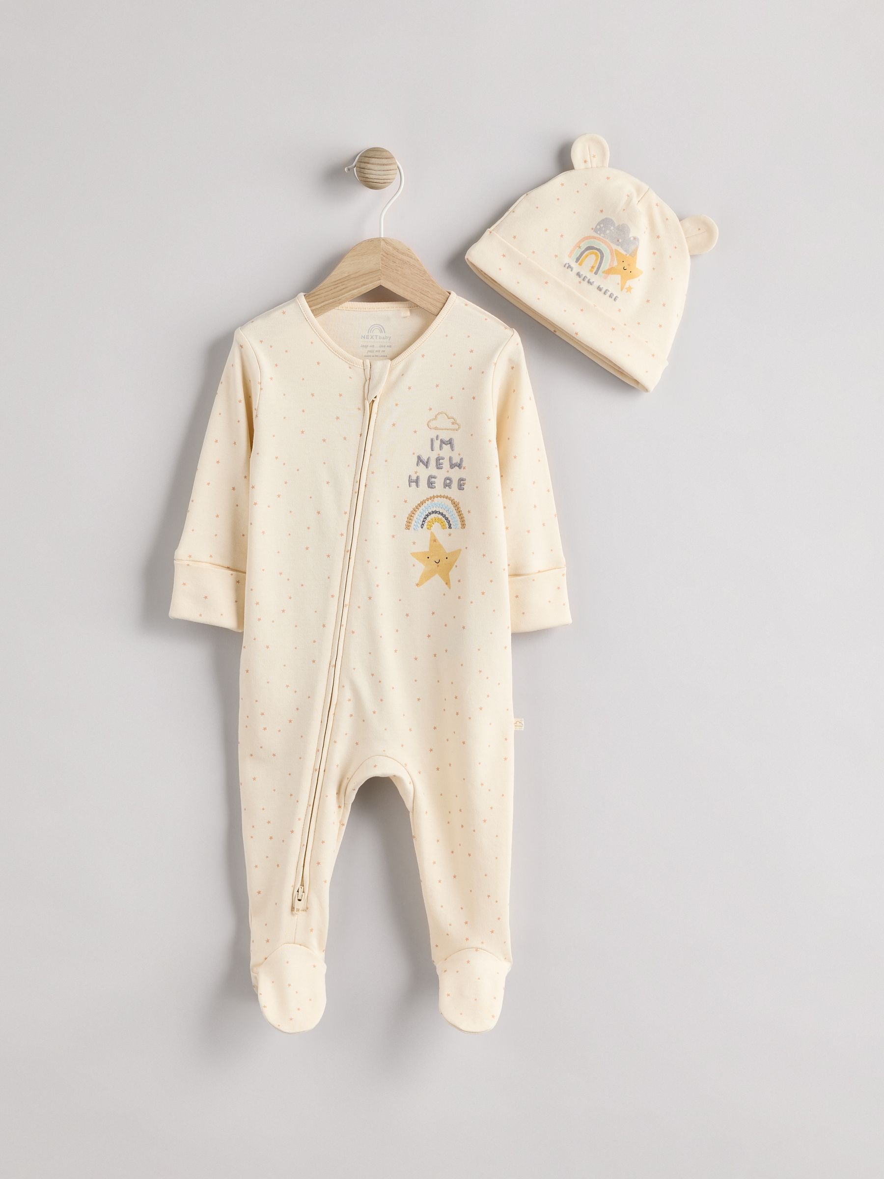 Cotton sleepsuit and hat set